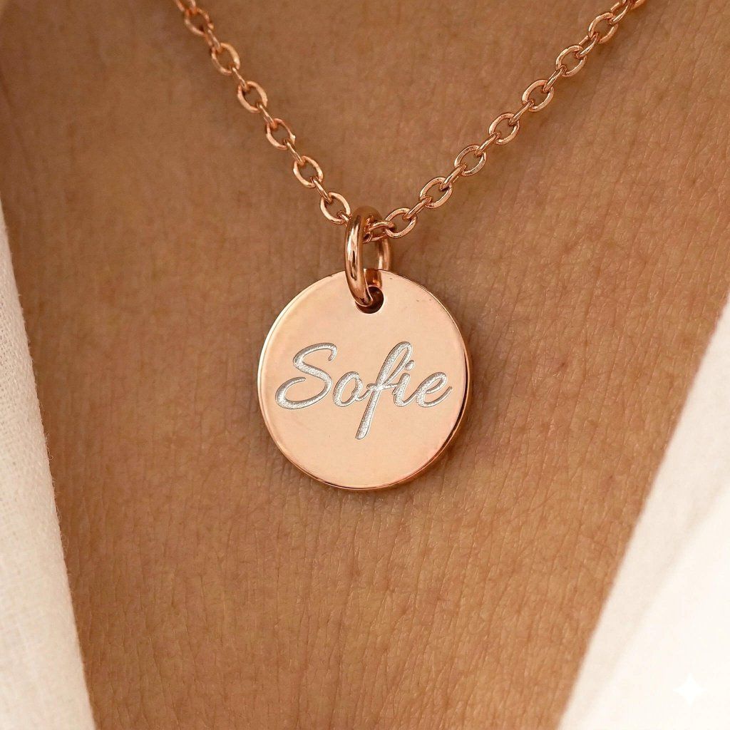 Náhrdelník obsahuje medailonek s gravírováním a jemný řetízek. Doplňte si svoji šperkovnici o unikátní šperk, který ponese důležité okamžiky ve vašem životě.